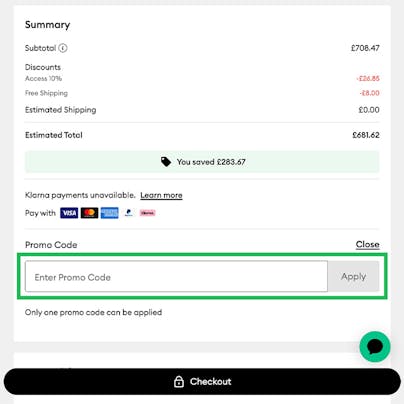 - Click "Checkout," paste your promo code into the "Enter Promo Code" tab and hit "Apply".